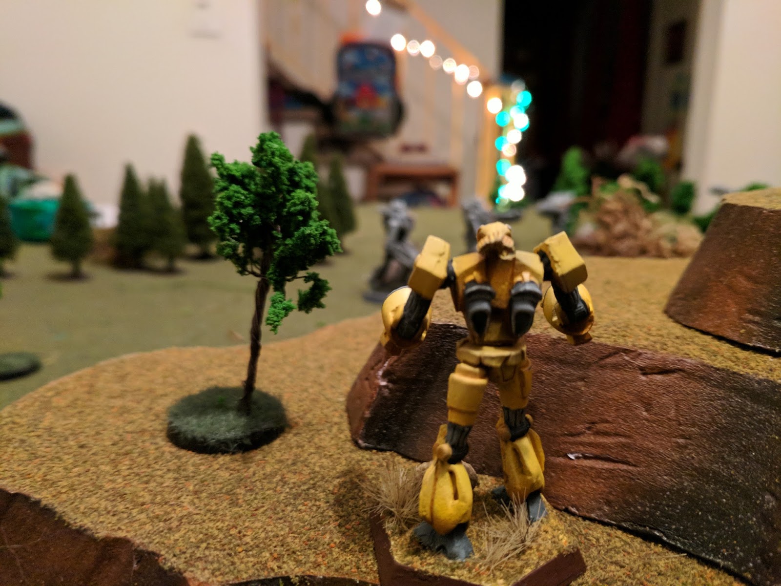 PPCs finally bring down the last enemy heavy, but on the same turn the Locusts score two Gyro hits, downing the otherwise robust Marauder. Still able to fire, it's not out completely, but we call the game at this point. An expensive draw.